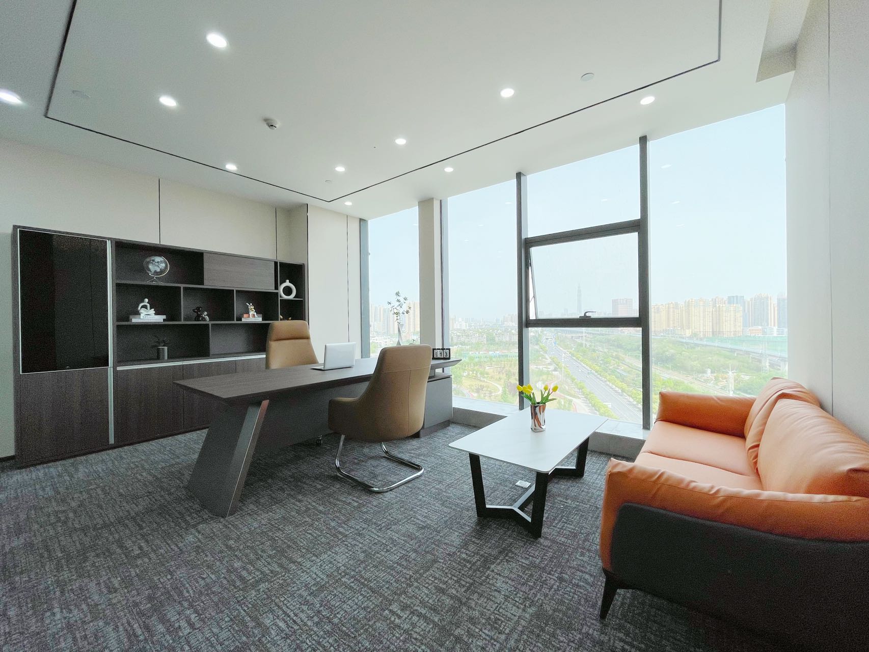 酒店式豪华大堂,9米挑高;外立面全采用LOW-E双层中空玻璃幕墙--隔音保温、节能舒适、多面采光;配置5台奥迪斯高速电梯,缩短高峰期等待时间。项目为臻稀现房写字楼,定制化办公格局,自由变换空间,媲美超甲写字楼的办公体验,打造成了一个区域性地标。